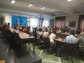 The 3rd day of the meeting, Wednesday 12 October, involved a tour of Chania, focusing on the city’s sustainable development interventions, as well as a visit to the pilot site. The tour was guided by TUC and KYDON. The Managing Director of KYDON, Mr Charalampos Litos introduced the pilot site to the partners. The JUSTNature partners were also welcomed by in Chania City Hall by Vice Mayor Mr Anastasios Aloglou.